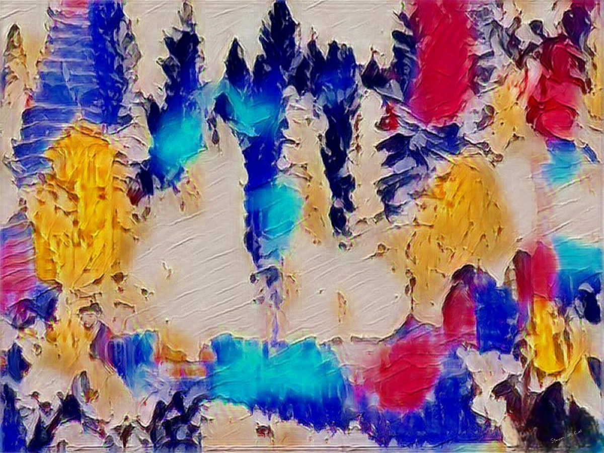 “A fusion of traditional, heavily textured ‘impasto’ painting with modern digital design techniques, the results are Simon’s beautiful and unique abstract landscapes and seascapes which adorn the walls of homes, offices, hotels and public around the world.” – Fine Art America