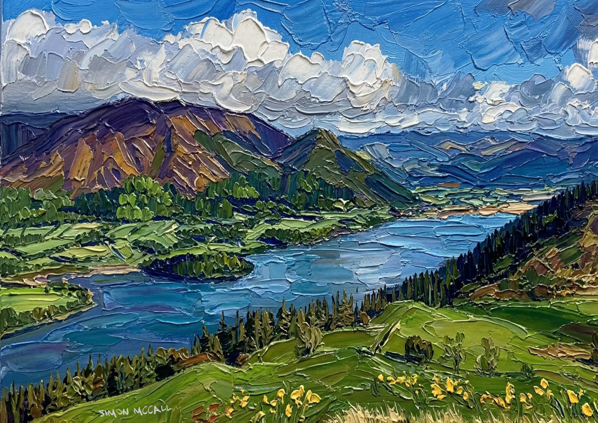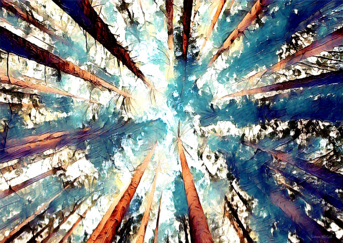 “A fusion of traditional, heavily textured ‘impasto’ painting with modern digital design techniques, the results are Simon’s beautiful and unique abstract landscapes and seascapes which adorn the walls of homes, offices, hotels and public around the world.” – Fine Art America